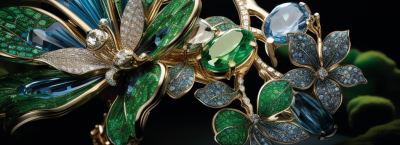 Украшения Алхимия Звезд представляют собой калейдоскопы, в которых сияют и блестят самые ценные камни - бриллианты, изумруды, рубины и сапфиры. Они создают впечатление восходящих звезд на ночном небе.